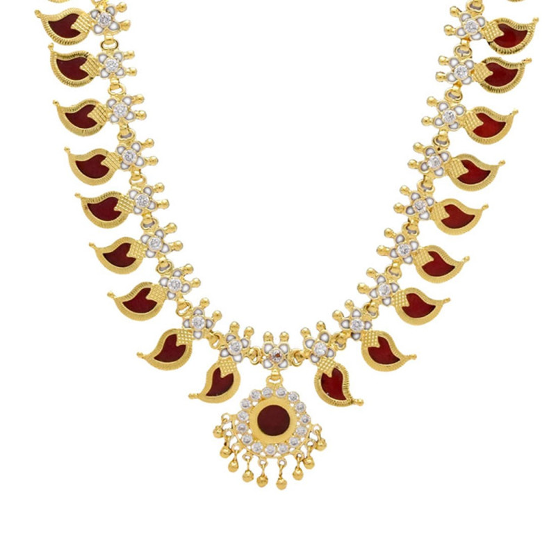 Traditional Mango Necklace is very traditional Kerala, South Indian Jewellery. This imitation ethnic Necklace is adjustable with backlink chain. Wear this one gram gold plated neck jewellery on parties and marriages. It also worn by south Indian brides and classic dancers.