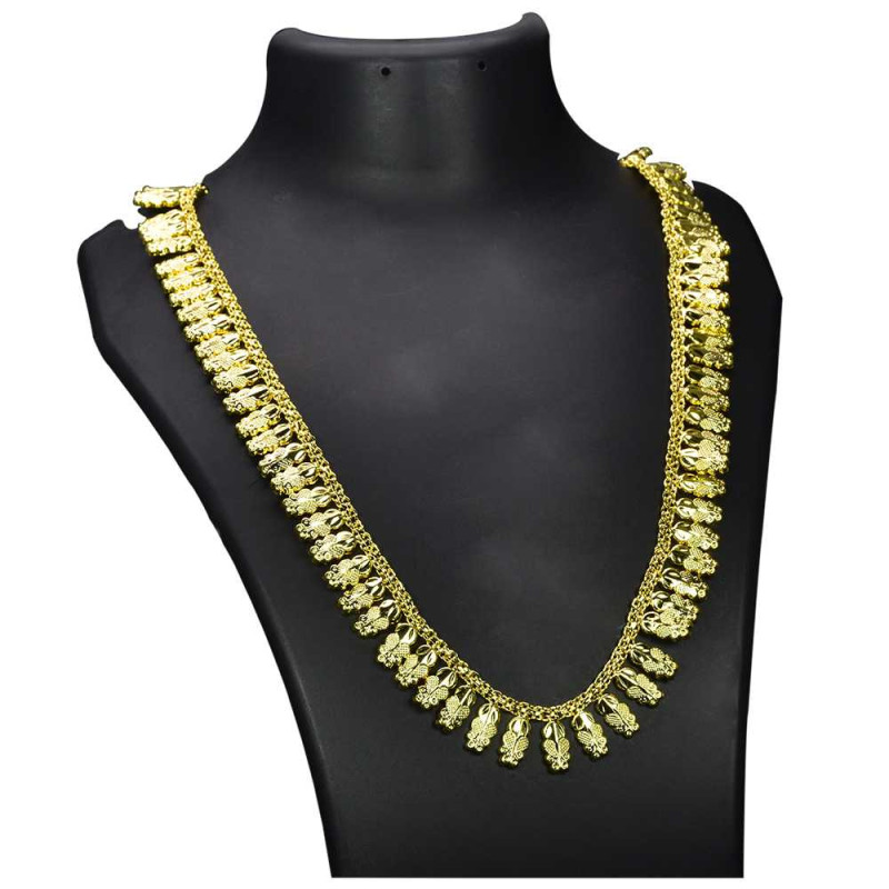 Kerala traditional designer gold plated Buds Long chain. Length adjustable with backlink chain. Its classic and trendy design will attract any one's attention. It is perfect with any traditional wear for a wedding or festive occasions.