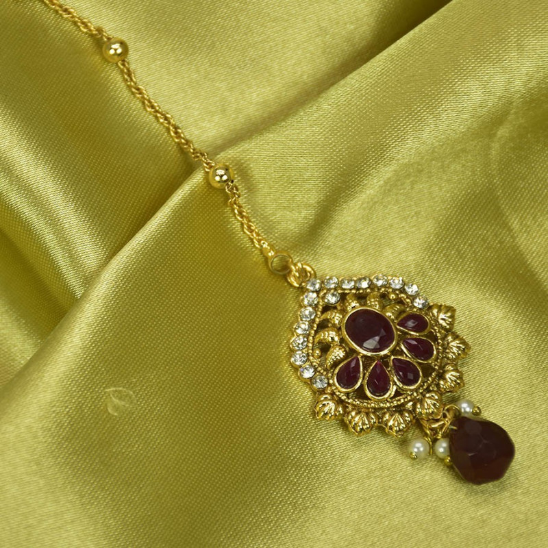 Antique gold plated Kemp or Pearls and Whitestone traditional Maang Tikka/Netti Chutti which can go along with any traditional dress for engagement and wedding parties.