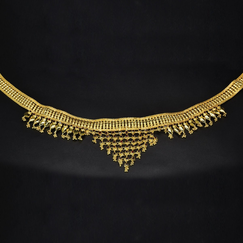 Gold Plated Stone Hip Chain/ Waist Belt/Oddiyanam Kamarbandh for Brides and dancers. This imitation bridal jewellery is intricate designed and adorned with Cz stones. The size can be adjusted with the link chain. A perfect adornment for women on their wedding and engagements with sarees.
