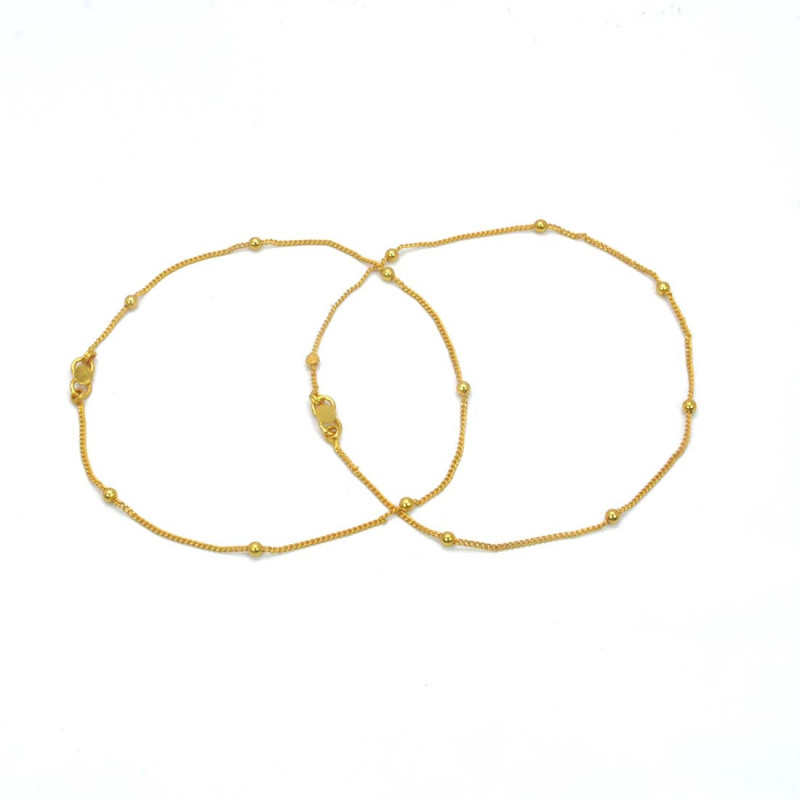 Very Delicate Thin Gold Plated Bead Anklets Payal/Foot Bracelet. Whether you are wearing a trendy or traditional outfit, these delicate thin anklets will not fail to compliment your ethnic look. This ankle bracelet/Payal /Padasaram / Kolusu is best for any age women and can be worn daily, for party or Marriage functions.