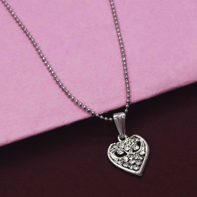 Silver Polished White Stone Heart Pendant With Ball Chain for girls and women. This simple imitation chain with white stones adorned heart pendant is a good option for your daily office or college wear. One can pair it with their Indian or western attires to look simple. A simple and elegant gift for your loved ones on a special occasion like birthday, anniversary, Mother's Day, Valentine's Day.