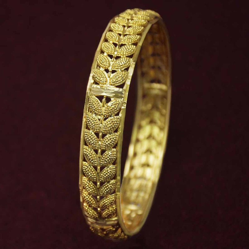 Stylish Trendy Gold Plated Medium Leaf Net Bangle for women and girls. This beautiful medium size single imitation bangle will light up your wrist and add favour to any outfit. This long-lasting leaf design bangle is perfect for all festive or wedding occasions.