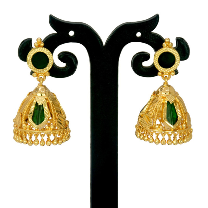 Stylish South Indian Traditional Nagapadam Jhumka earrings for women. These Jumkies are the epitome of trendy ethnic Kerala bridal jewellery and are an absolute must-have for any traditional occasion. The back of the stud is a screw-type stem, ensuring a secure fit. Pair them with a traditional Nagapadam necklace or Mala to make a grand statement.