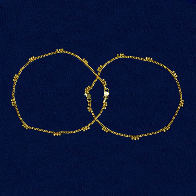 Elegant Gold Plated Beads Thin Link Chain Anklets, perfect for adding a touch of glamour to your every day wear. The delicate and attractive gold plated triple beads with thin link chain ankle bracelet provide a stunning look. This jewellery is suitable for women of all ages and can be paired with any outfit. Elevate your style with these stunning payals that will last a long time.